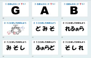 コードカードをシャッフルしても言えるように短時間で練習です。