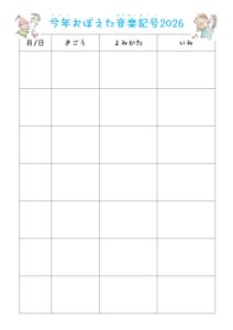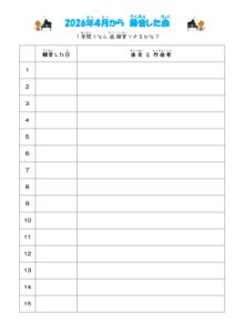 このページを両面印刷して、1年のレッスン回数分渡します。