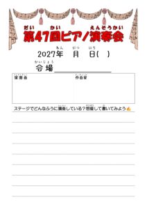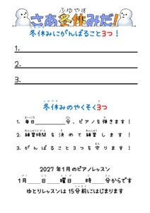 私のレッスンは、何でもかんでも先に決めてしまうので、保護者もそれに合わせて日程組んで頂いています。