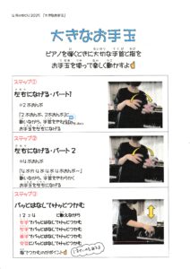 今月は柔らかい手首と、指の強化のために「大きなお手玉」を使います。